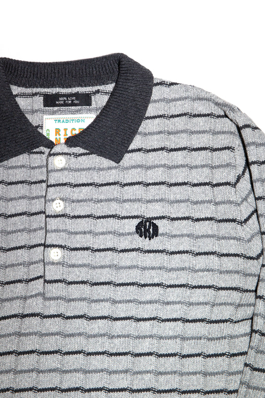 KNITTED CROPPED POLO SHIRT (LIGHT GRAY)