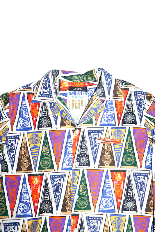 COLLEGE PENNANT OPEN COLLAR SHIRT (OFF WHITE)