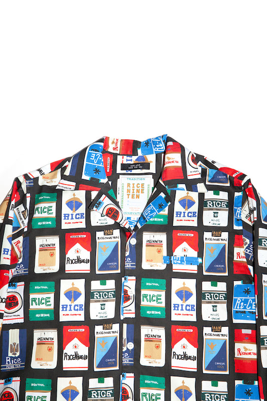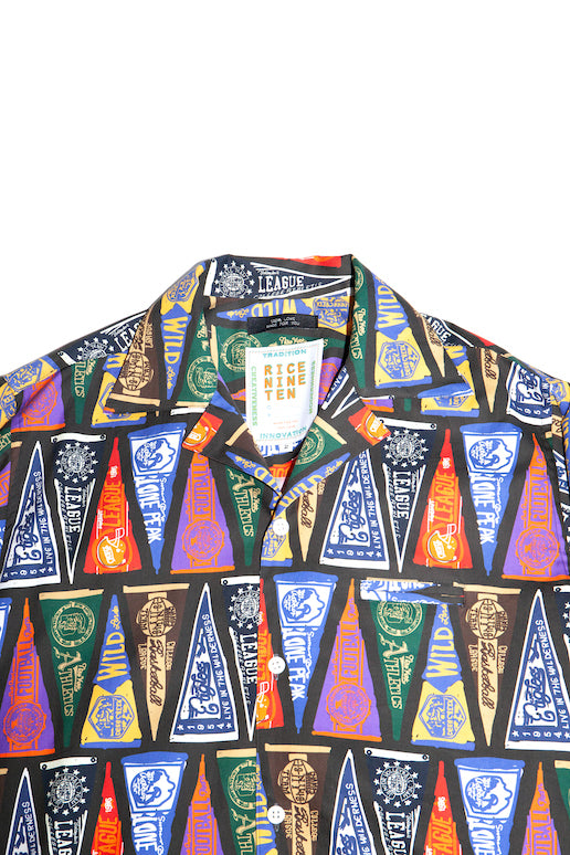 COLLEGE PENNANT OPEN COLLAR SHIRT (BLACK)
