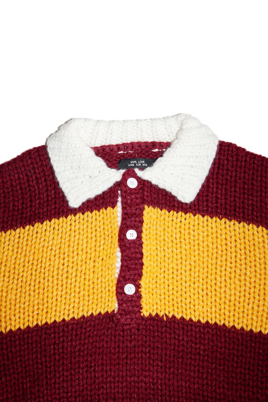 HAND KNITTING RUGBY SHIRT (WINE RED)