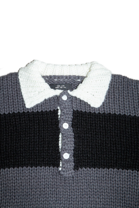 HAND KNITTING RUGBY SHIRT (DARK GRAY)
