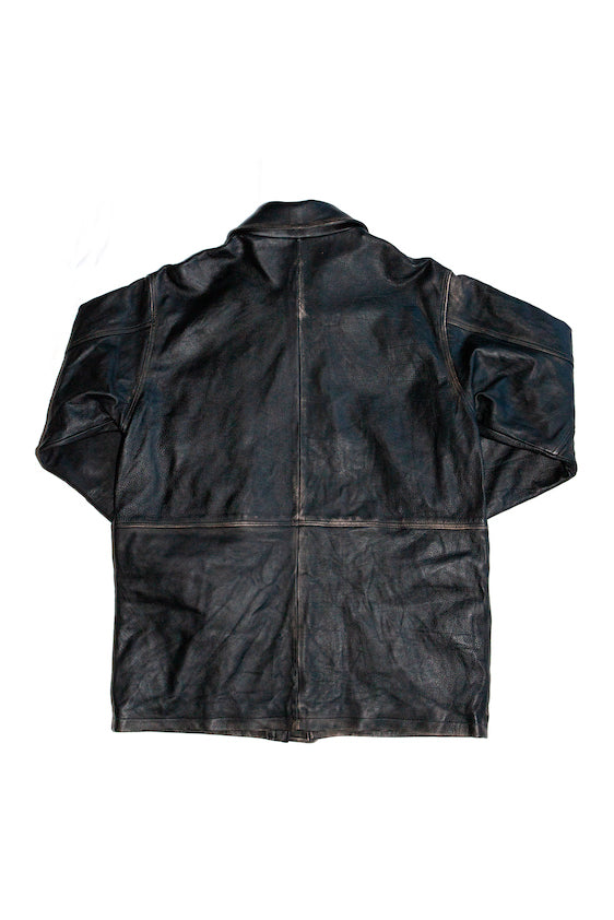 An environmentally friendly vegetable tanned cowhide leather coat.