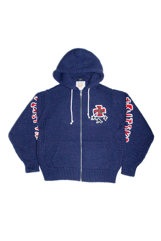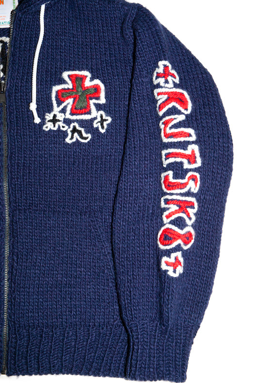HAND KINITTED SK8 ZIP HOODIE (NAVY)