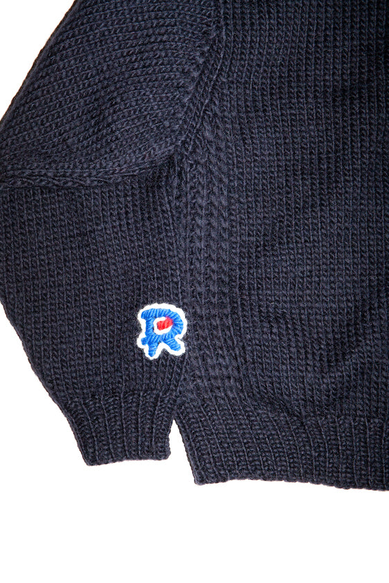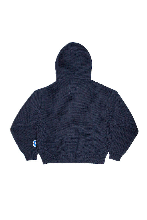 HAND KINITTED ZIP HOODIE (DARK NAVY)