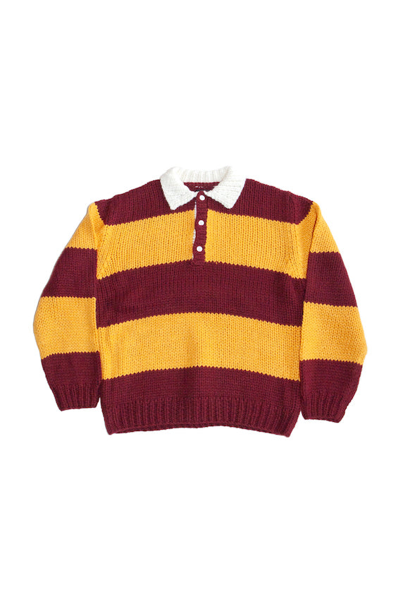 HAND KNITTING RUGBY SHIRT (WINE RED)