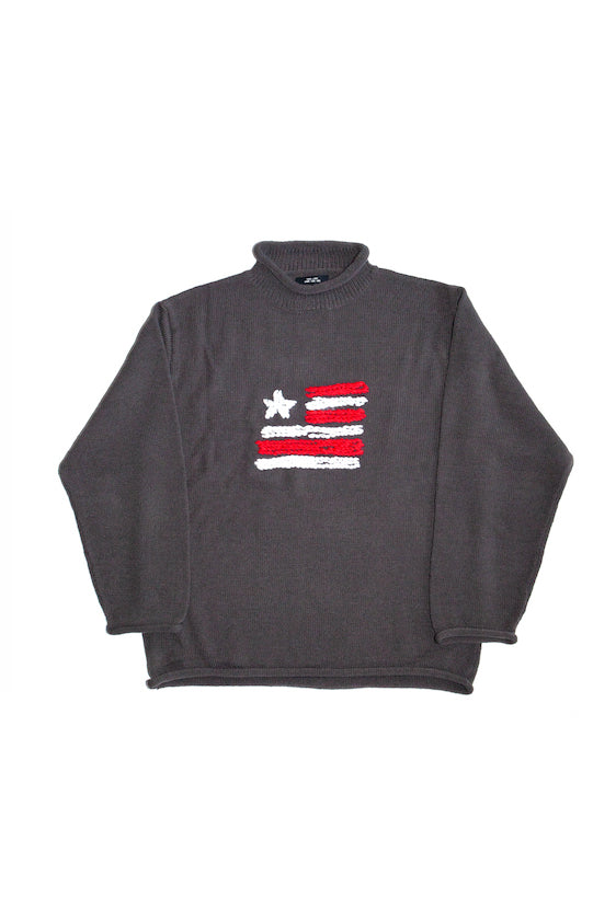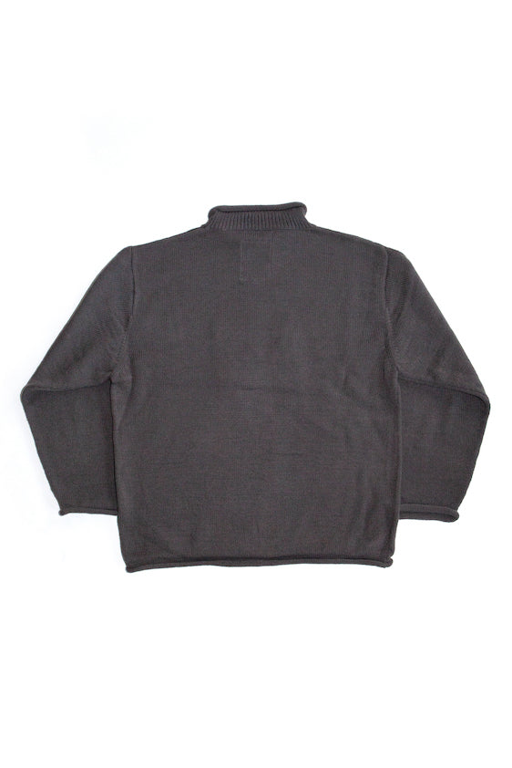 Mid-neck sweater with rolled neck, cuffs and hem.