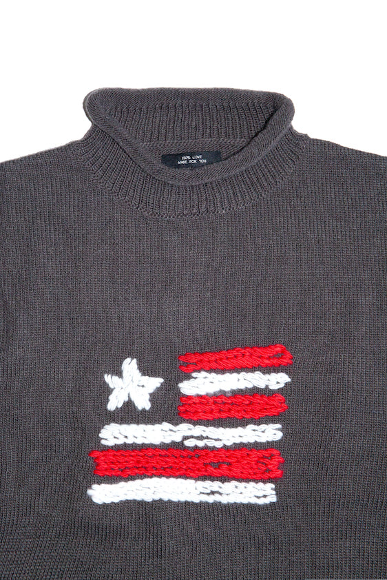 The graphic on the chest is hand-embroidered. The silhouette is slightly loose.