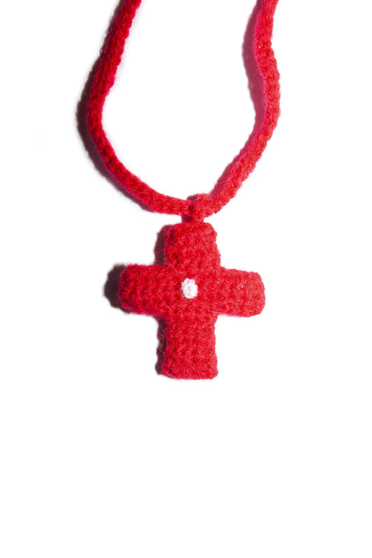 Sold outHAND KNITTED CROCHET SCARF (RED)