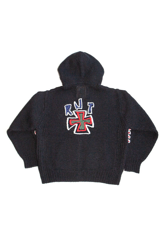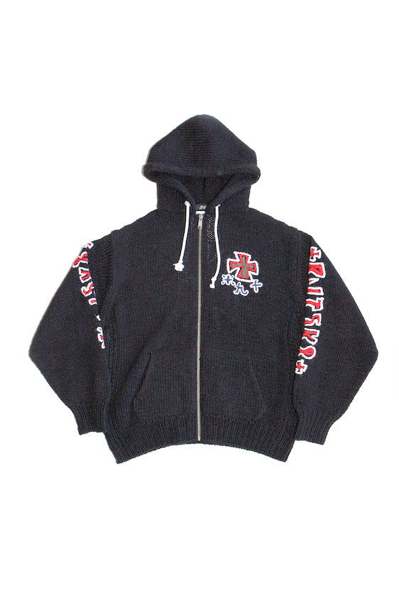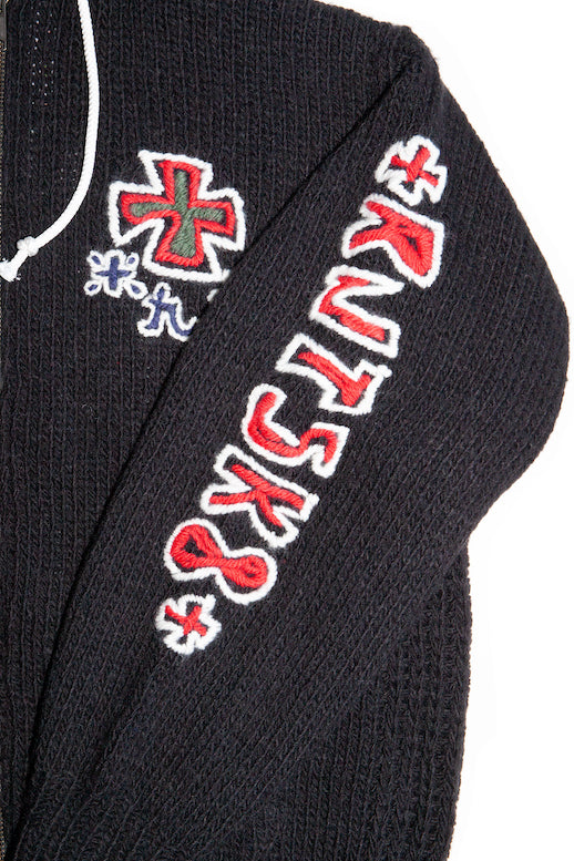 HAND KINITTED SK8 ZIP HOODIE (BLACK)