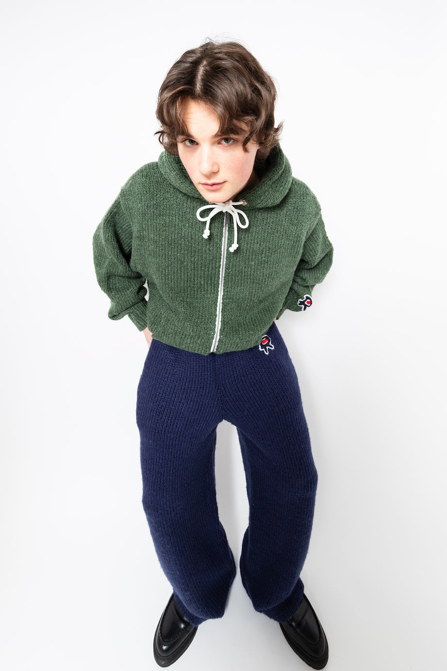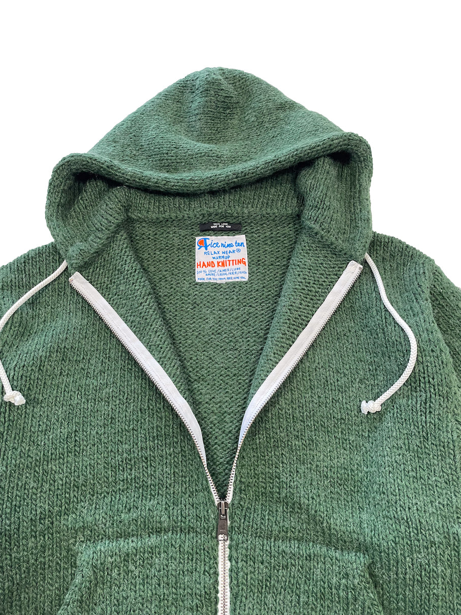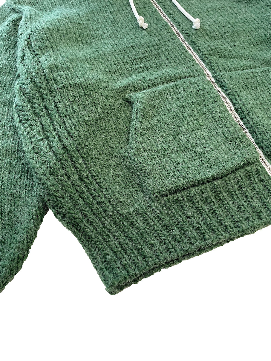 HAND KNITTED ZIP HOODIE (FOREST GREEN)