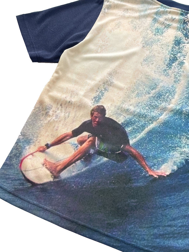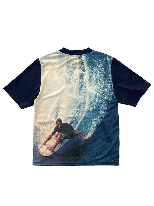칼라 구리, 소매는 배색의 전환. 길의 전면, 뒷면에 다른 포토 프린트.