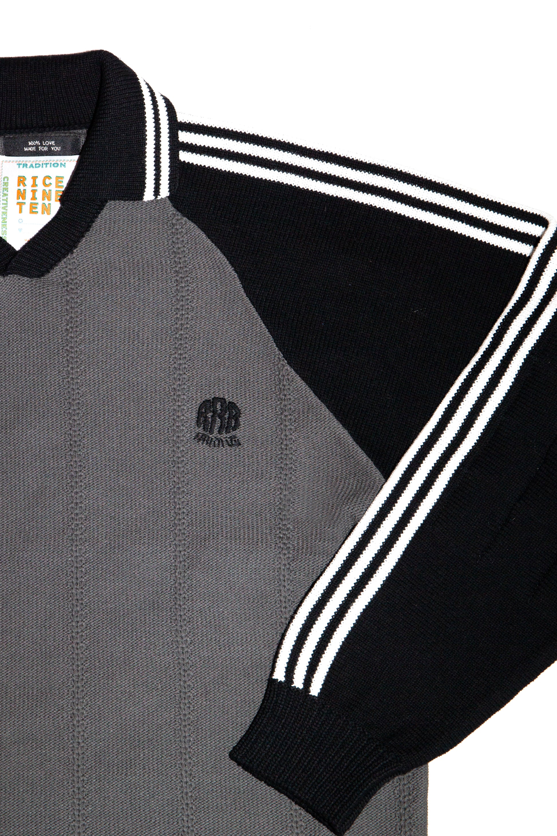 袖、衿に 配色ライン。 左胸のグラフィックは手刺繍。